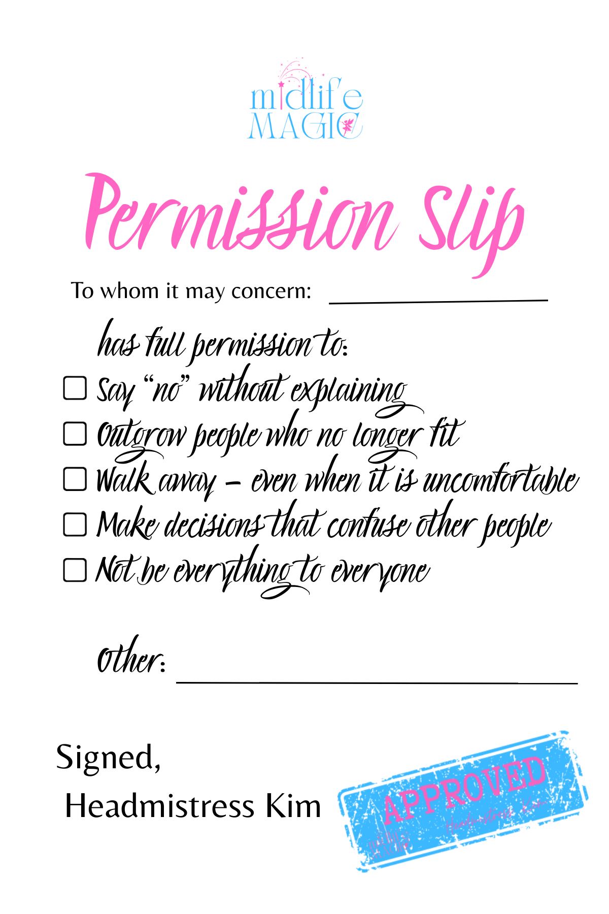 Midlife Magic: Printable Permission Slips